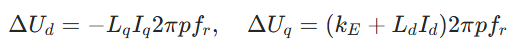 - 耦合项:方程中 - LqIqωe 和 LdIdωe 为 dq 轴间的耦合项,需通过控制算法(如前馈控制)补偿,确保解耦效果。