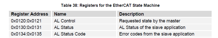 当从站发生错误时,会切换自身的状态从OP到更低状态,并将错误代码写入从站的0x134寄存器报告AL状态码。
