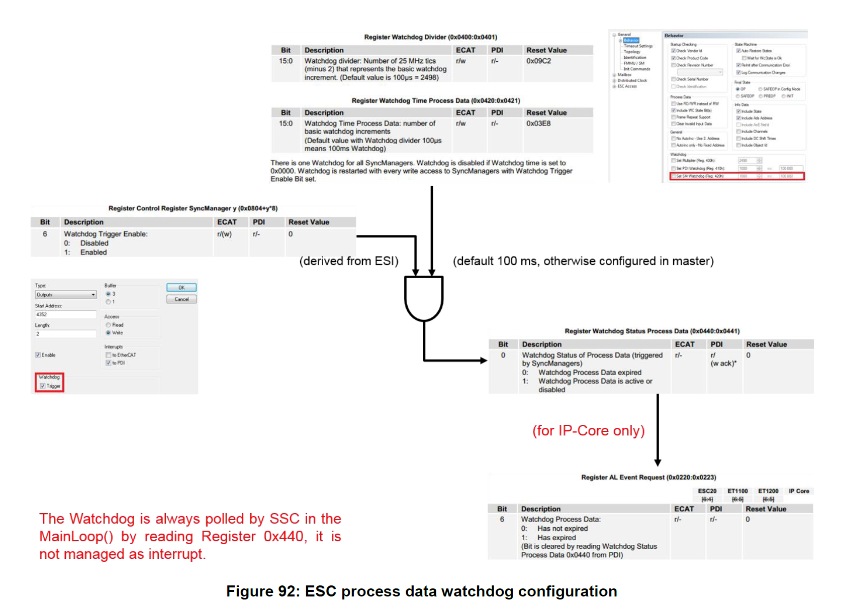 HW_EscReadDWord(WdStatusOK, ESC_PD_WD_STATE); // 读0x440寄存器获取硬件WatchDog的状态