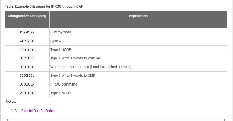 icap_in <= WBSTAR ; //Warm boot start address (Load the desired address)