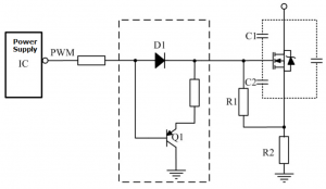 图腾柱电路也可以加速关断,当电源IC的驱动能力足够时,图2中的电路可以改进为下图这种形式。
