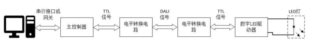 图2是DALI照明系统的简易结构图。由此可以看出,电平转换电路在整个系统中起着极其重要的作用。