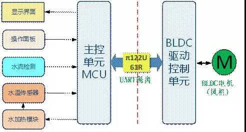 燃气热水器中的电路部分,主要由“主控单元”和“驱动控制单元”两大部分构成,主控单元负责人机交互、水流/温度检测、加热控制等功能;驱动控制单元则负责驱动BLDC风机。