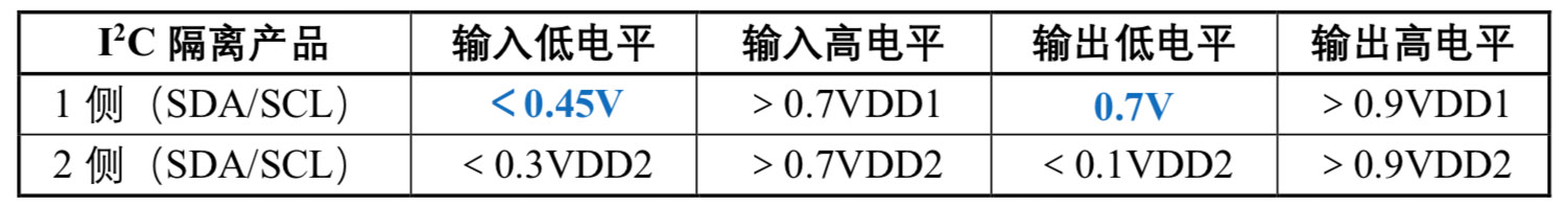 荣湃I2C隔离器的输入输出电平和其他美国厂家的I2C隔离产品一样,并非是标准的TTL或者CMOS电平。如表3所示。