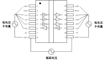 隔离器的失效模式分为两种:第1种失效模式为加在隔离器两侧之间的电压超过了极限值,破坏了两侧的隔离介质;第2种失效模式为隔离器任意一侧加有高电压大电流,破坏了隔离器内部子电路和其中一侧隔离介质。