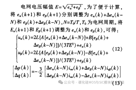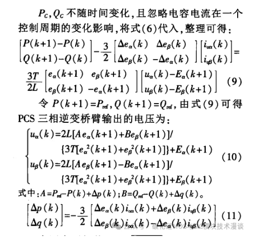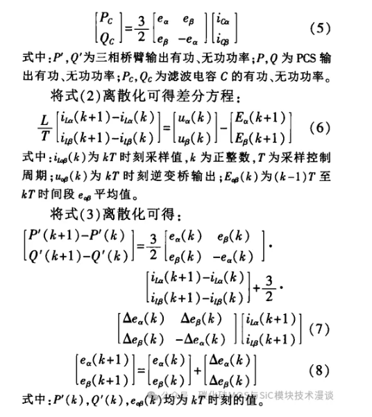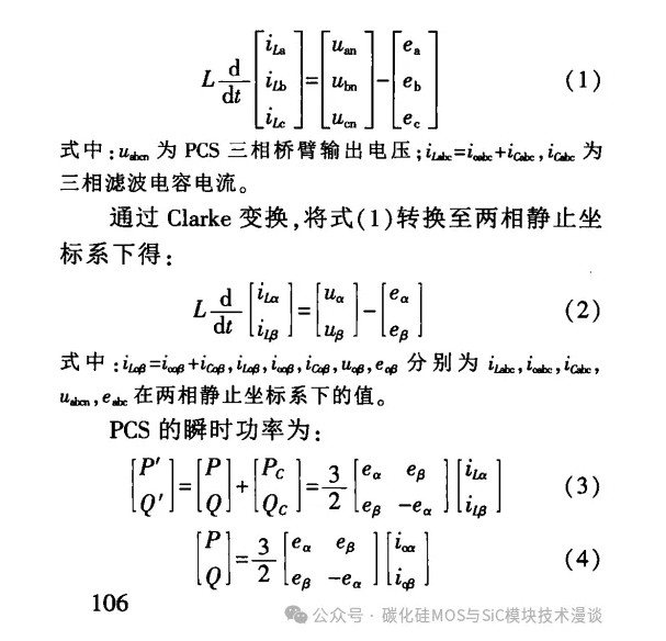 在此采用两相静止坐标系下的直接功率并网控制策略实现 PCS 有功与无功的瞬时功率直接控 制。根据图1,忽略馈线阻抗,可得 PCS 在三相静止坐标系下的数学模型: