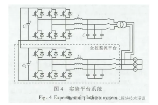 为验证所提控制策略,搭建如图4所示的实验系统,通过AC/DC全控整流平台得到直流源作 为PCS 直流输入,PCS 和整流平台共用一个电网 接口,电网供电仅需满足 PCS 和整流平台的损 耗,降低了实验系统对交流配电容量的要求。