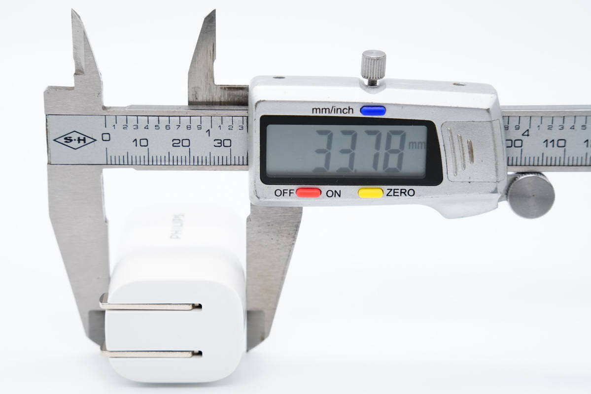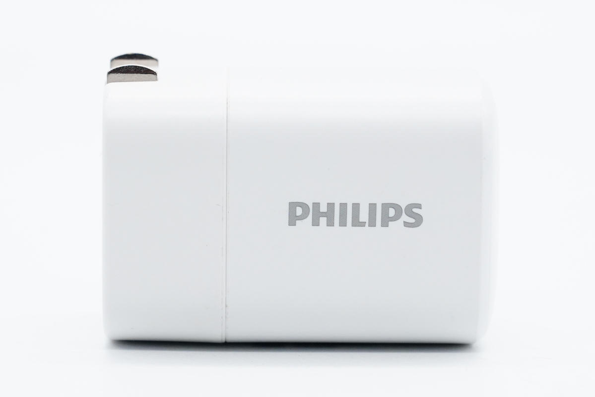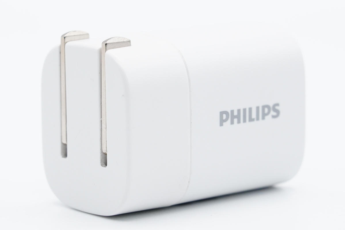 飞利浦这款充电器机身通体白色,腰身圆润,输入端配备可折叠插脚,方便携带。