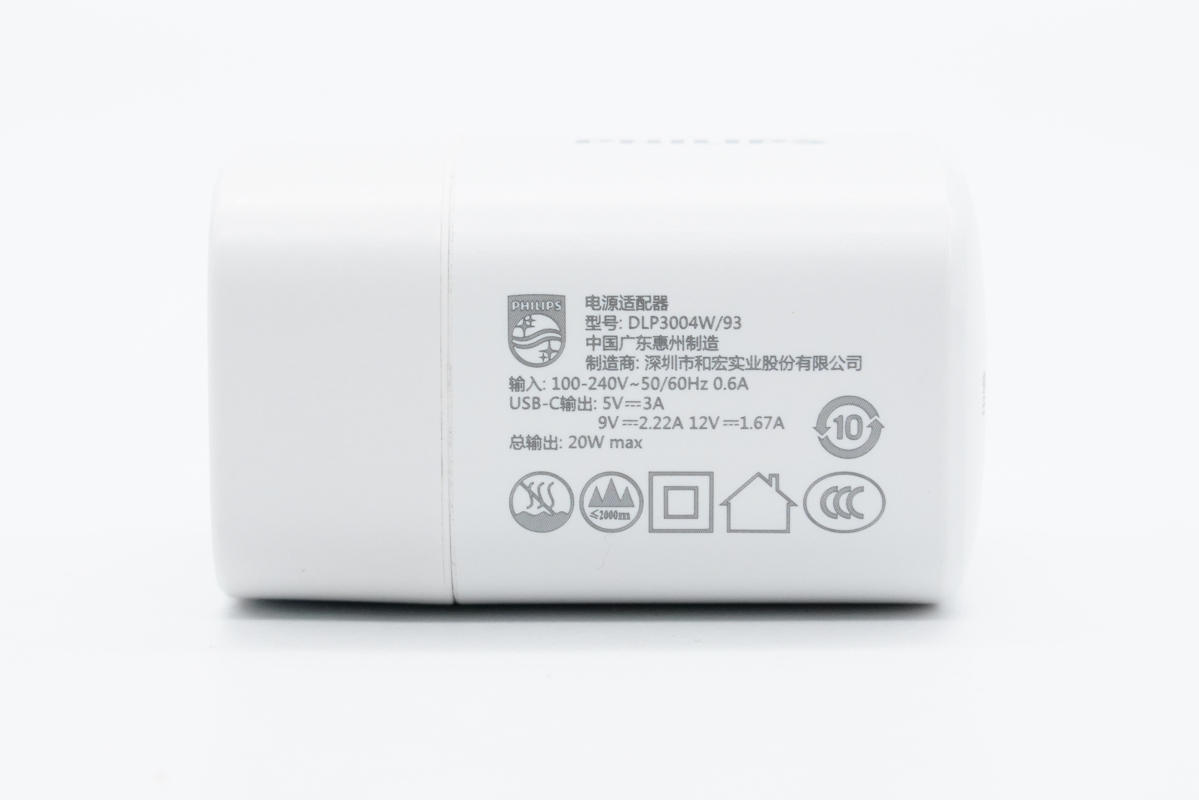 一、飞利浦迷你20W充电器外观
