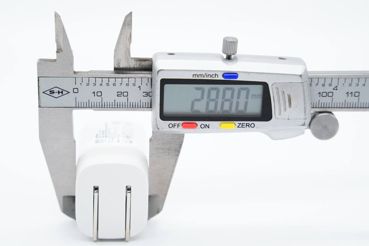 和苹果20W充电器直观对比,稍高也稍窄一些。