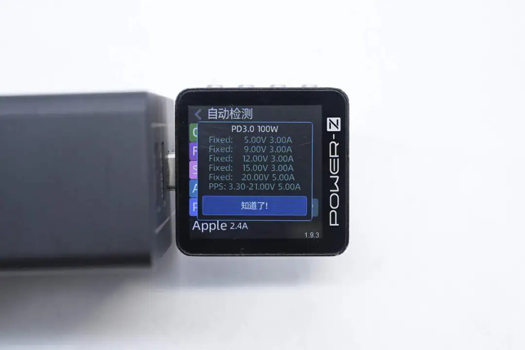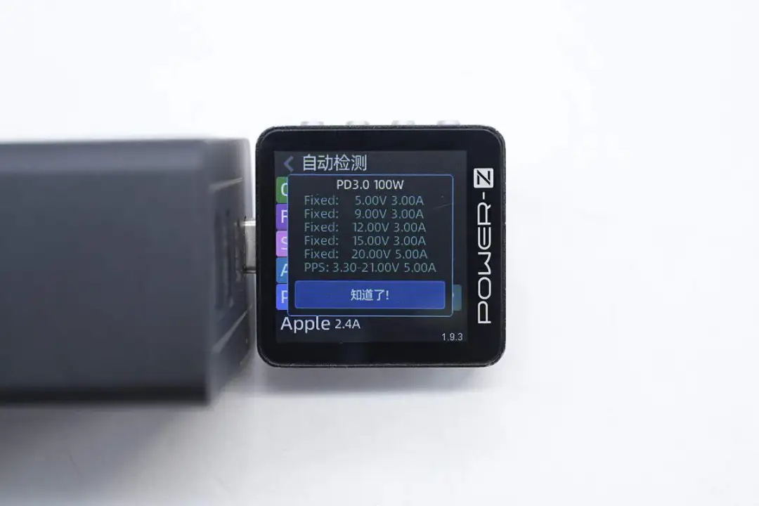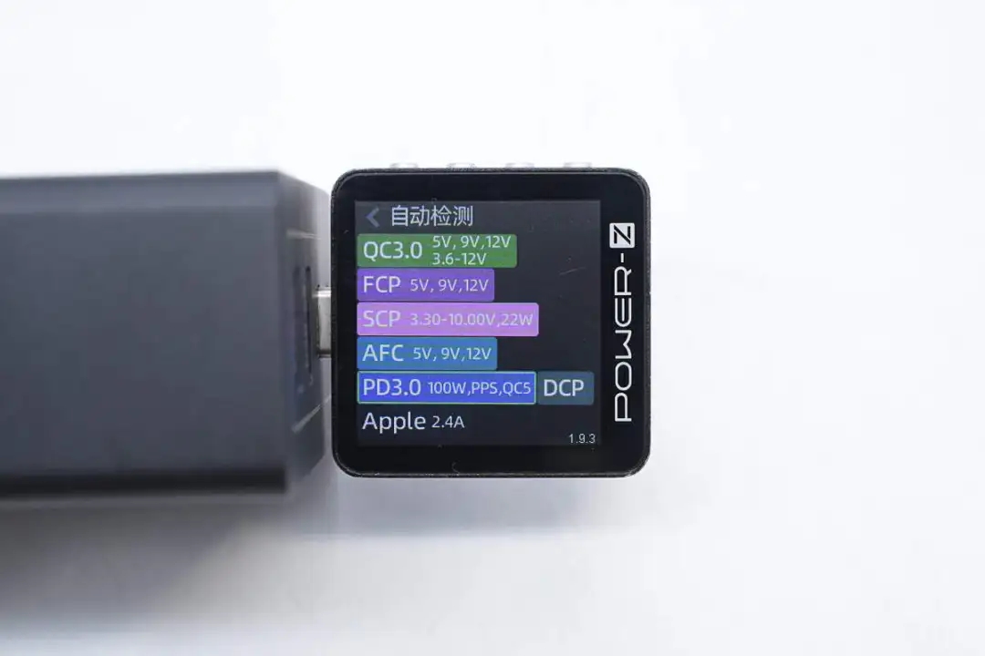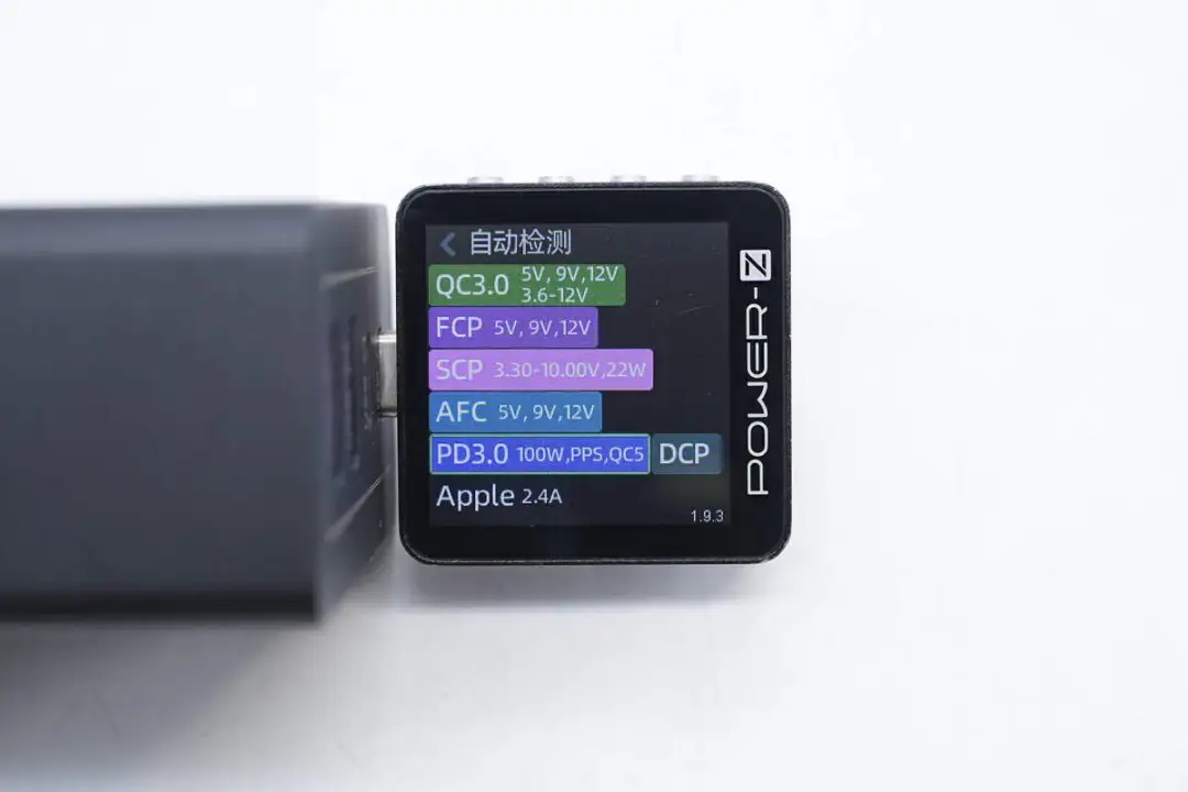 使用ChargerLAB POWER-Z KM003C测得USB-C1口支持FCP、SCP、AFC、QC3.0/5、PD3.0、PPS、DCP、Apple 2.4A充电协议。