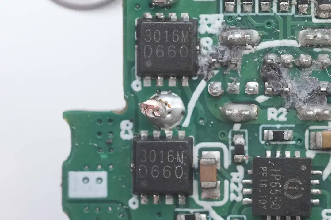 USB-A1口输出VBUS开关管特写,丝印3016M的MOS管。