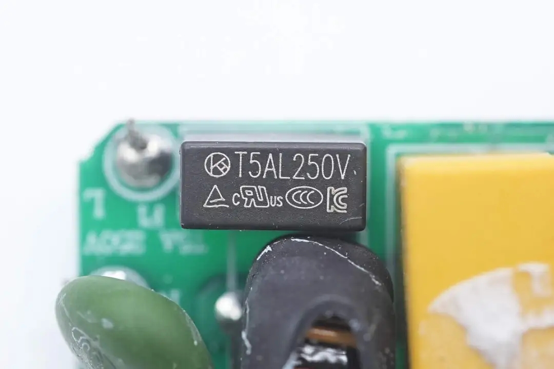 将充电器输入端外壳拆开,插脚采用白色塑料板以及螺丝固定,通过导线连接PCBA模块通电。