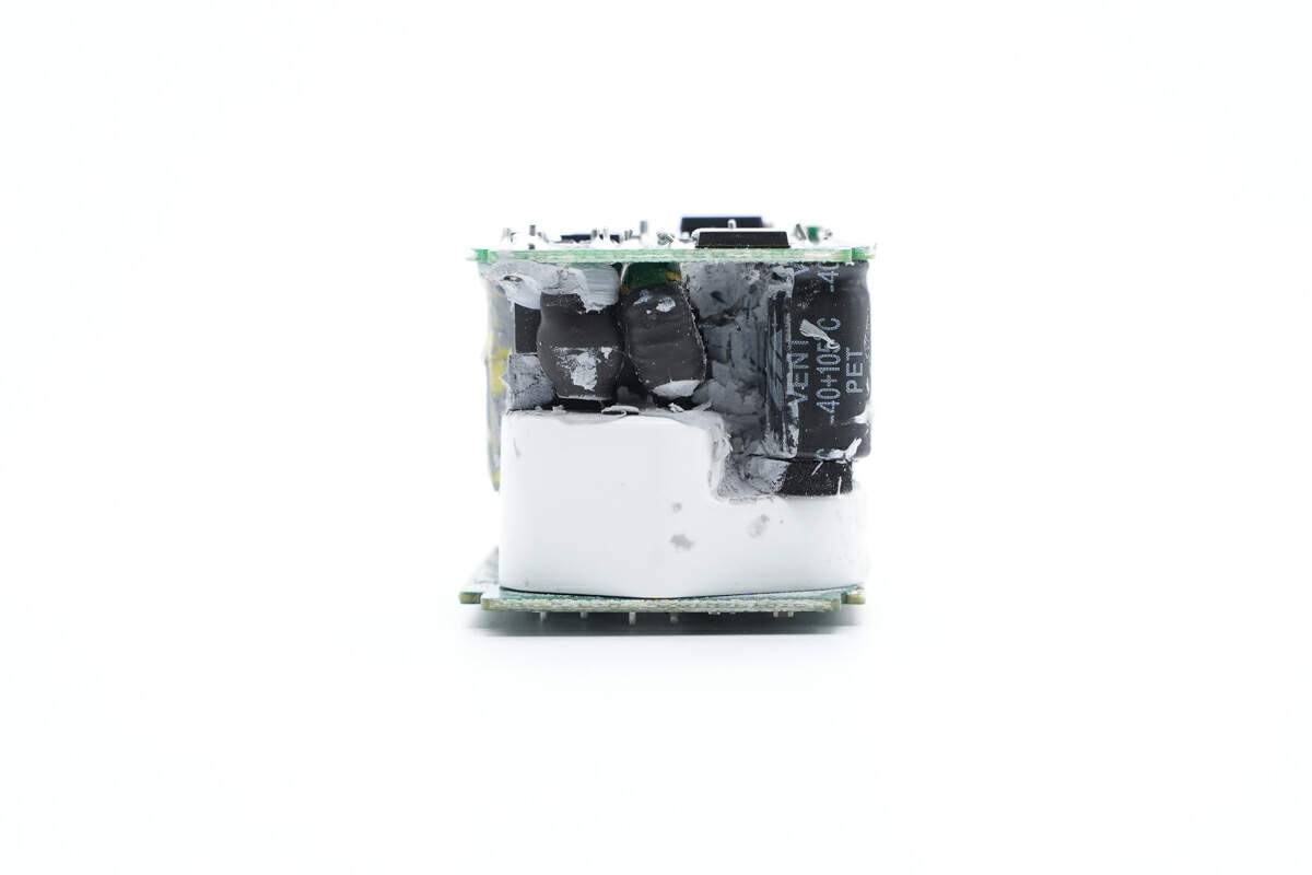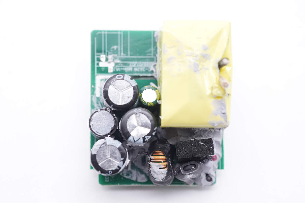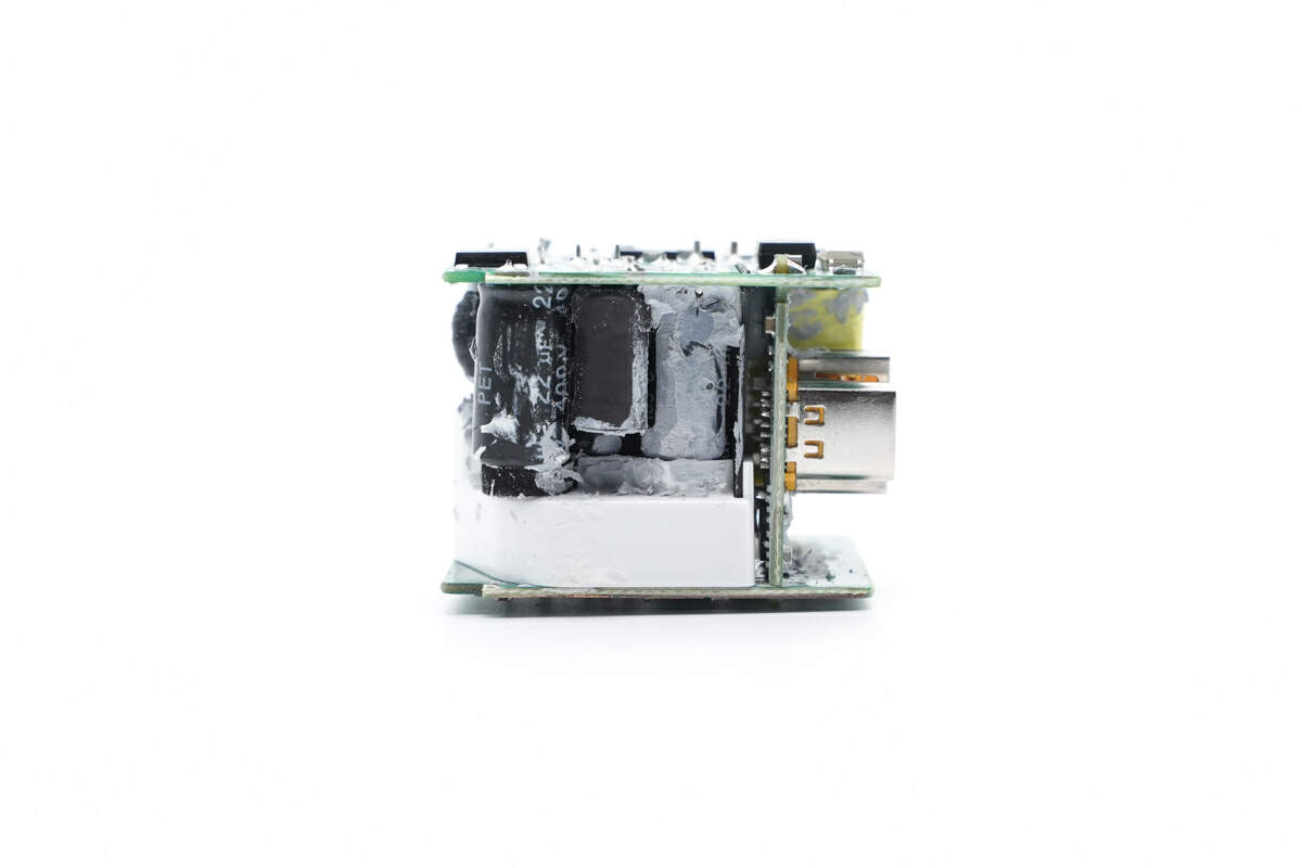 充电器内部PCBA模块采用多块PCB焊接组成,内部空间打胶固定成为一个整体。