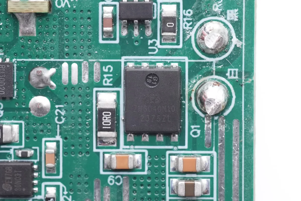 同步整流管来自真茂佳,型号ZMS040N10N,是一颗耐压100V,导阻4mΩ的NMOS,采用DFN5*6封装。