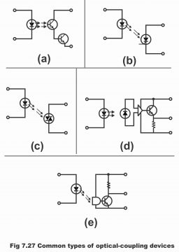 在图(d)中,展示了一种光隔离线性耦合器。该器件将输入电流的变化转换为输出电压的变化(即,在该器件中,输出电压可以通过输入电流的变化来改变)。输出电路由放大器组成。光电二极管已与其输入端子平行固定。光电二极管感测LED发出的光的变化,并向放大器发送输入信号,而放大器的输出端存在发射器跟随器级。这种耦合器用于电话线耦合和音频目的。
