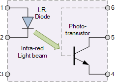 光耦合器(也称为光隔离器)的基本设计由产生红外光的LED和用于检测发射的红外光束的半导体光敏器件组成。如图所示,LED和光敏器件均封装在带金属支腿的光密主体或封装中,用于电气连接。
