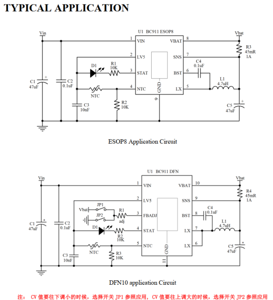 具备完善保护与监测功能:支持NTC电池温度监测,温度异常时停止充电,接地可禁用该功能;内置过流保护、输入欠压锁定、输入过压保护、150℃热关断保护及短路电池检测;STAT引脚提供充电状态指示,充电时拉低,完成后呈高阻态,方便系统实时监测。