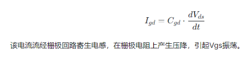机理:开关过程中,Vds急剧变化通过米勒电容(Cgd)注入电流到栅极: