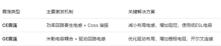 现象:栅极驱动电压Vgs出现高频振荡,可能误触发或损坏器件。根本原因:栅极回路的寄生电感和电容耦合了高频噪声。