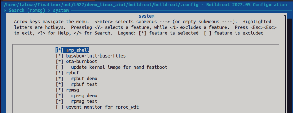 勾选rpmsg demo和rpmsg test;