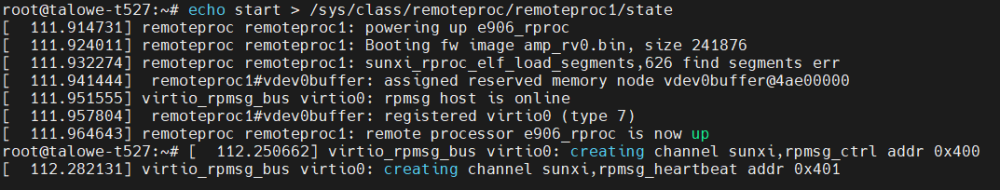 echo start > /sys/class/remoteproc/remoteproc1/state;