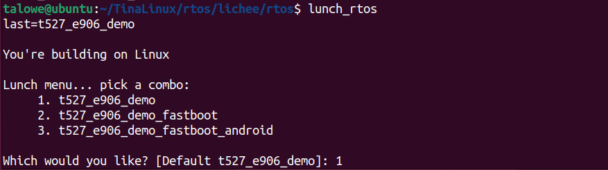 cd ~/TinaLinux/rtos → source envsetup.sh → lunch_rtos,