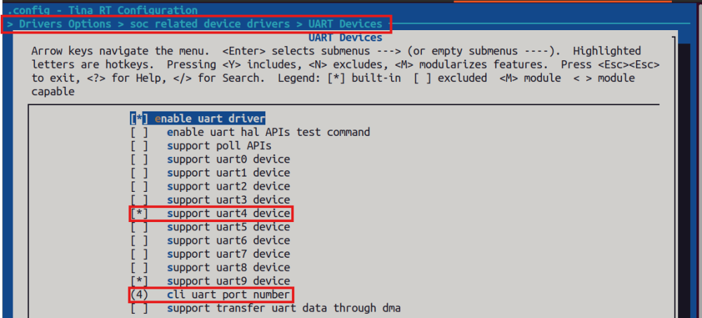 终端配置:选中UART4作为调试终端(后续连接电脑串口用);