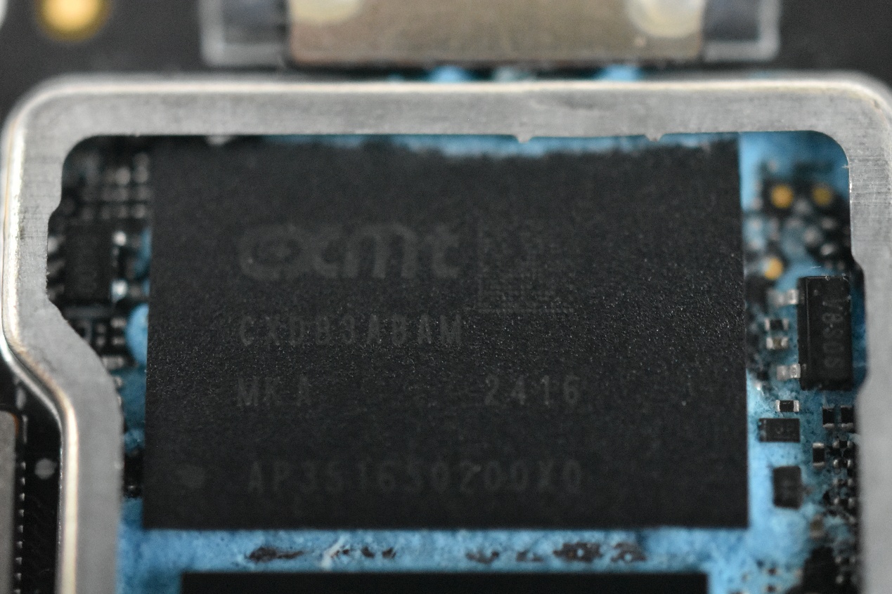 这颗存储器芯片来自长鑫存储,型号为CXDB3ABAM-MK-A,是长鑫存储(CXMT)生产的一款LPDDR4/4X 8Gbit x32 FBGA内存芯片,适用于高性能计算和数据处理场景,专为无人机、手机、平板电脑等对功耗敏感的移动设备设计。