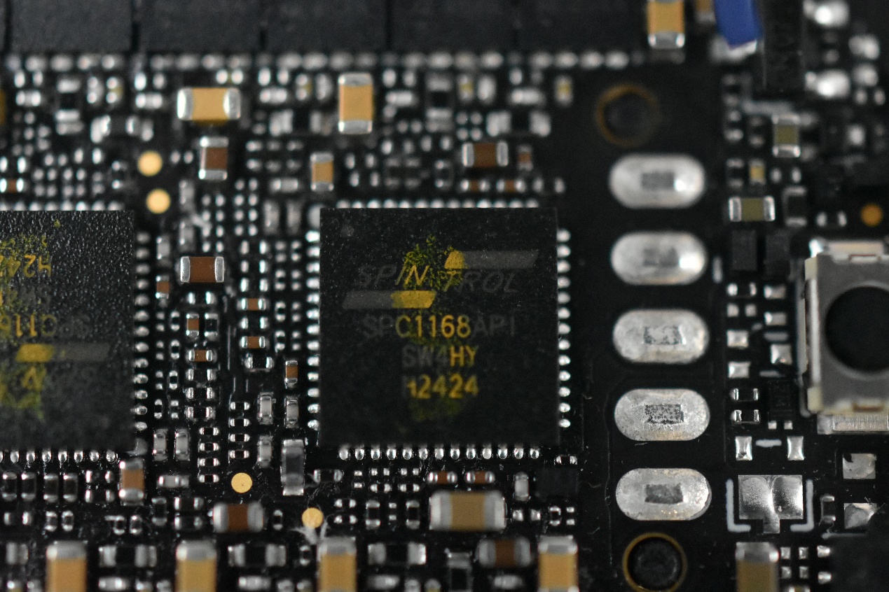 可以看到这两颗MCU都来自Spintrol(旋智),产品型号为SPC1168API,封装方式为LQFP52。该产品是基于32位 ARM Cortex-M4内核的MCU,内置12通道PWM,16通道14位ADC和3路带比较器的可编程增益放大器。