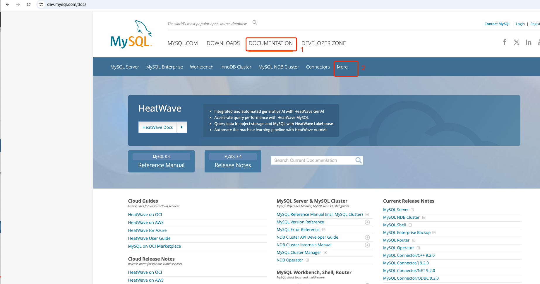 访问mysql官方地址:https://www.mysql.com,点Documentation,然后选择more,如下图参考信息