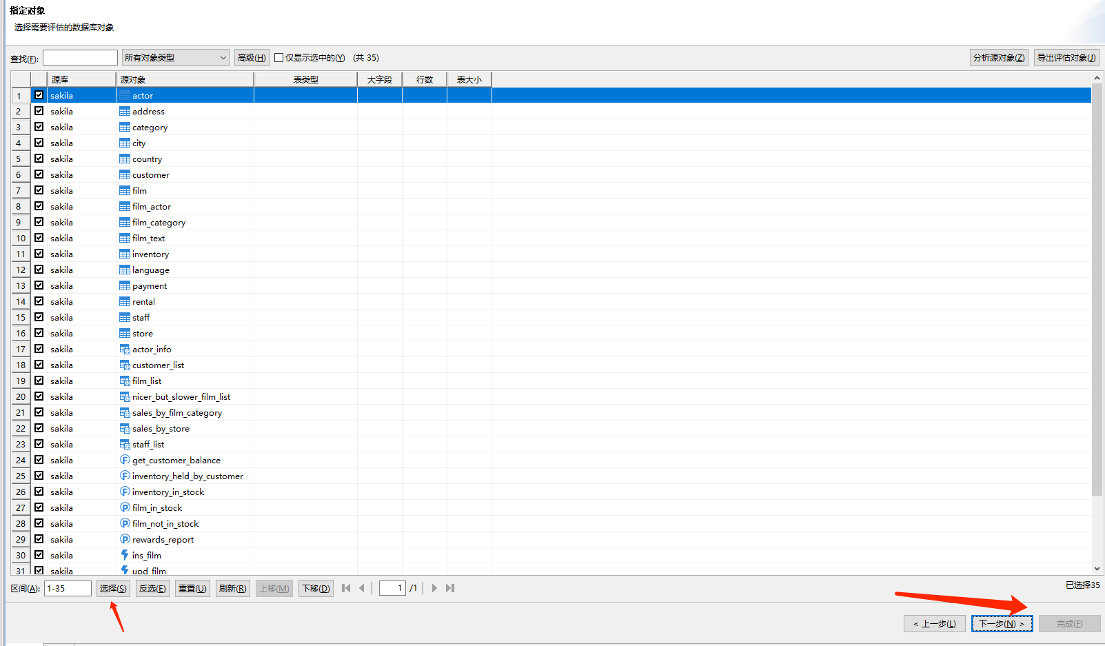 选择所有对象,然后点下一步