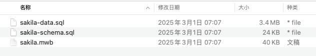 下载完成之后解压完显示如上图三个文件,这里拿 sakila 作为示例: