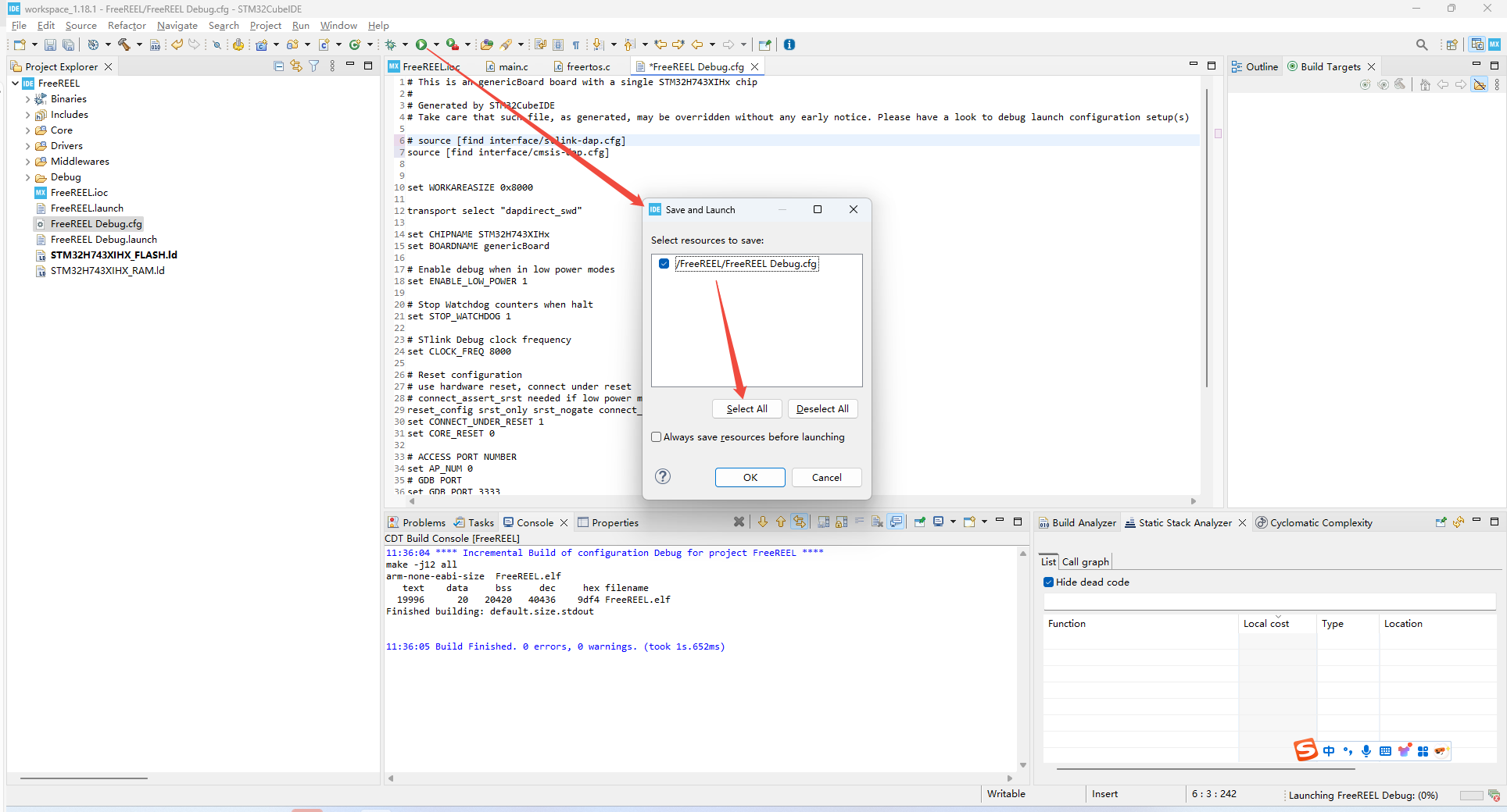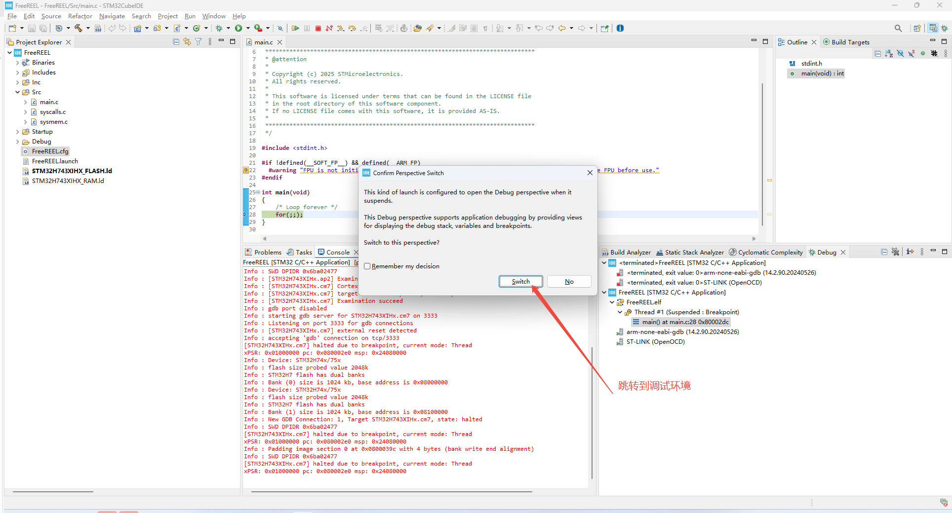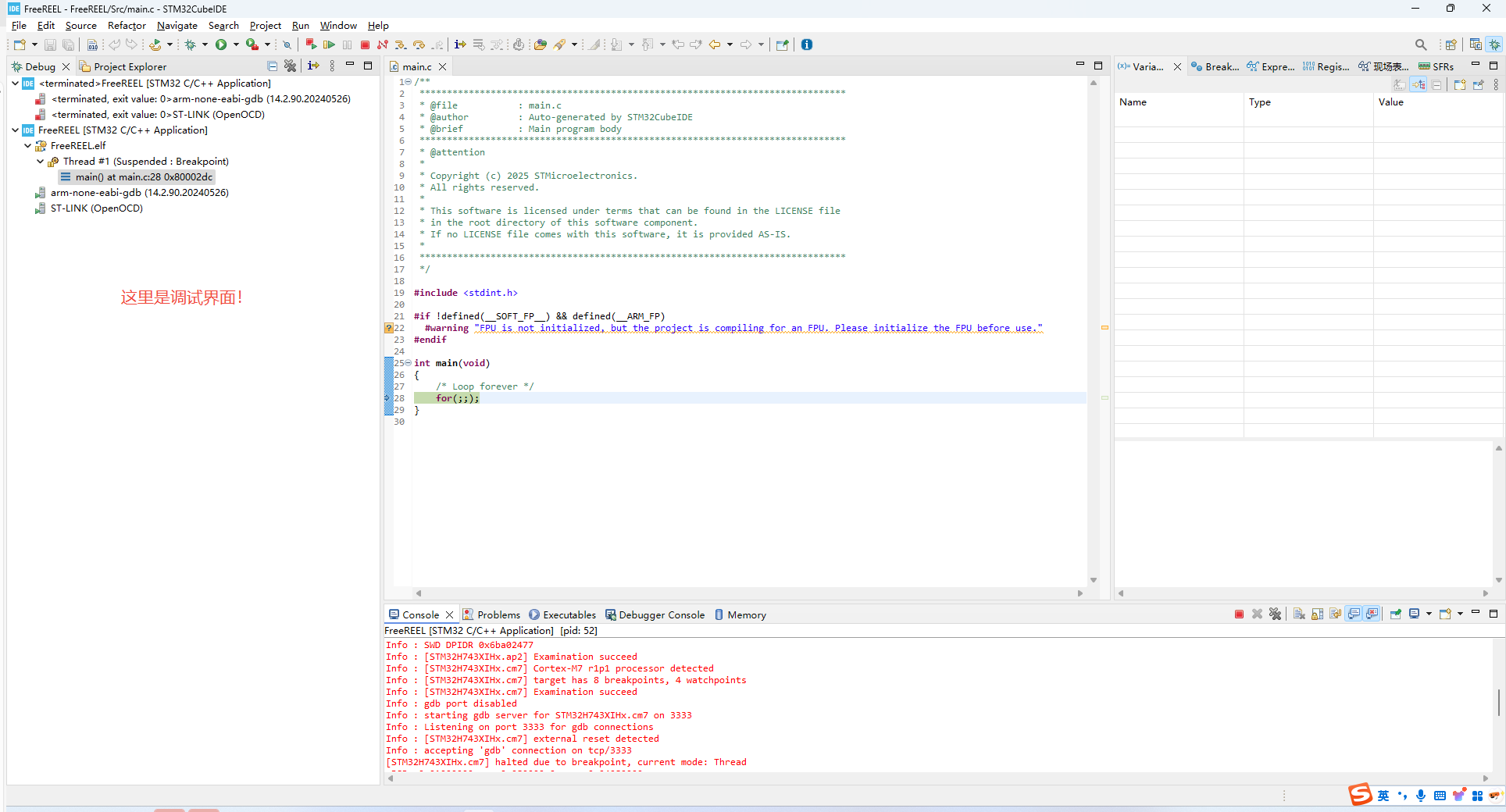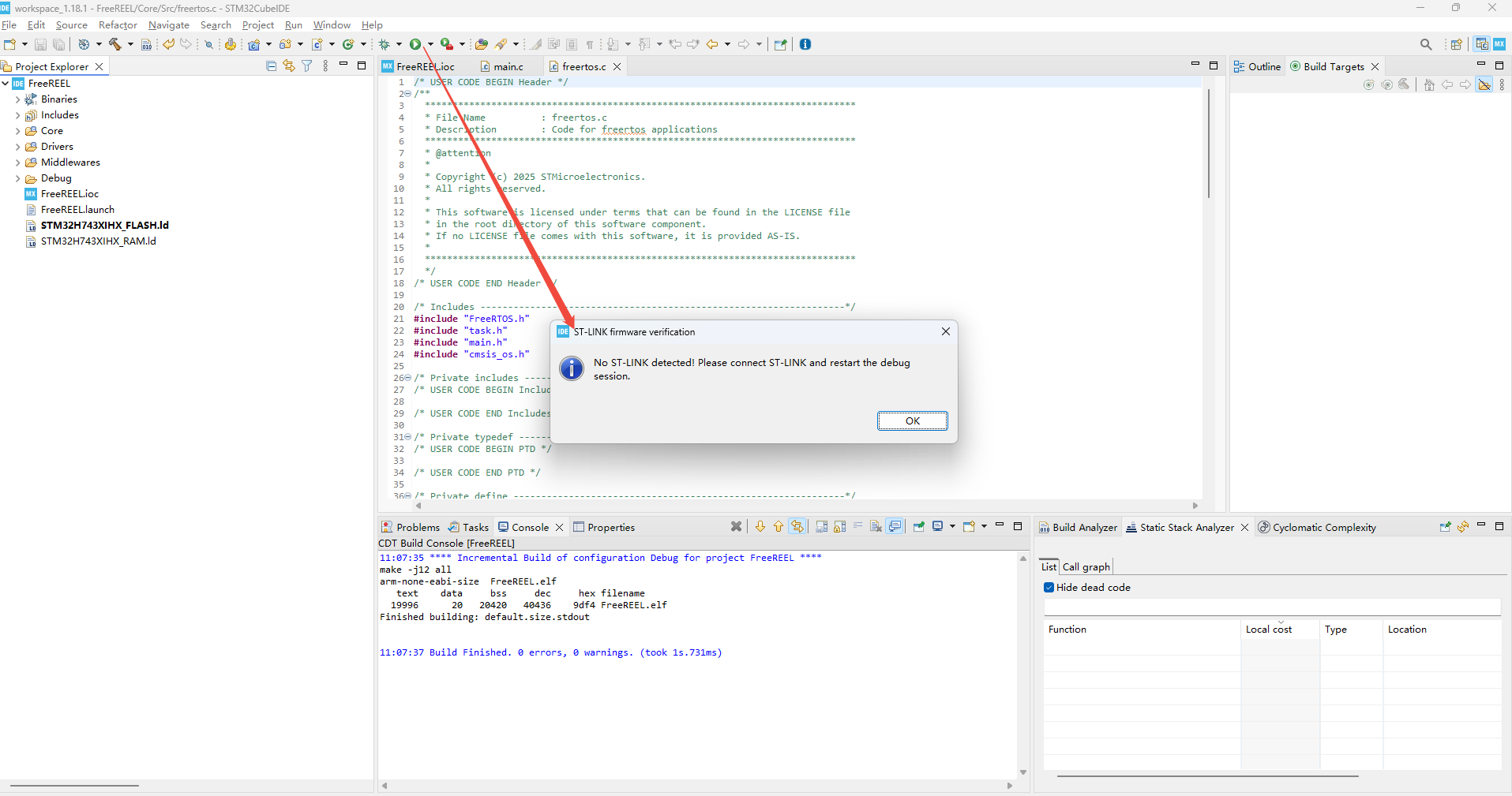 之前使用freeRTOS一直没有调试成功,可能是freeRTOS工程路径问题,具体原因还有待后续进一步查明。