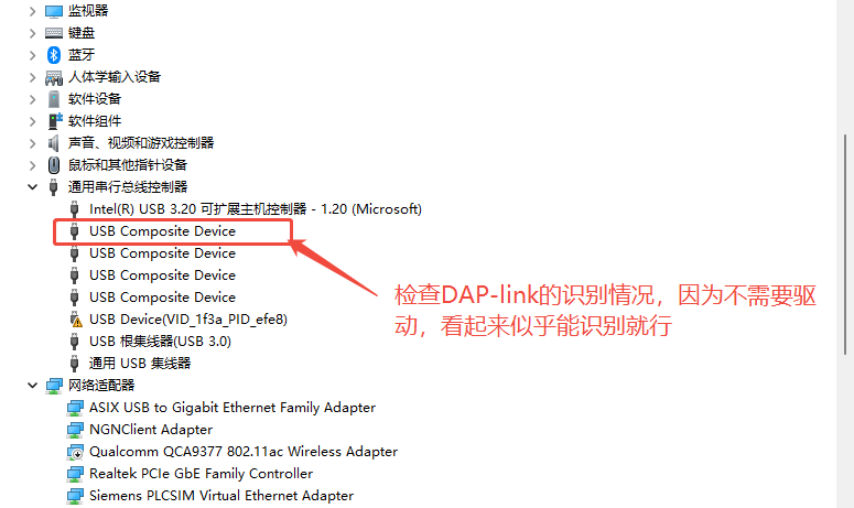 (1)无法连接ST-LINK调试器,因为我用的是DAP-Link(野火提供的fireDAP)