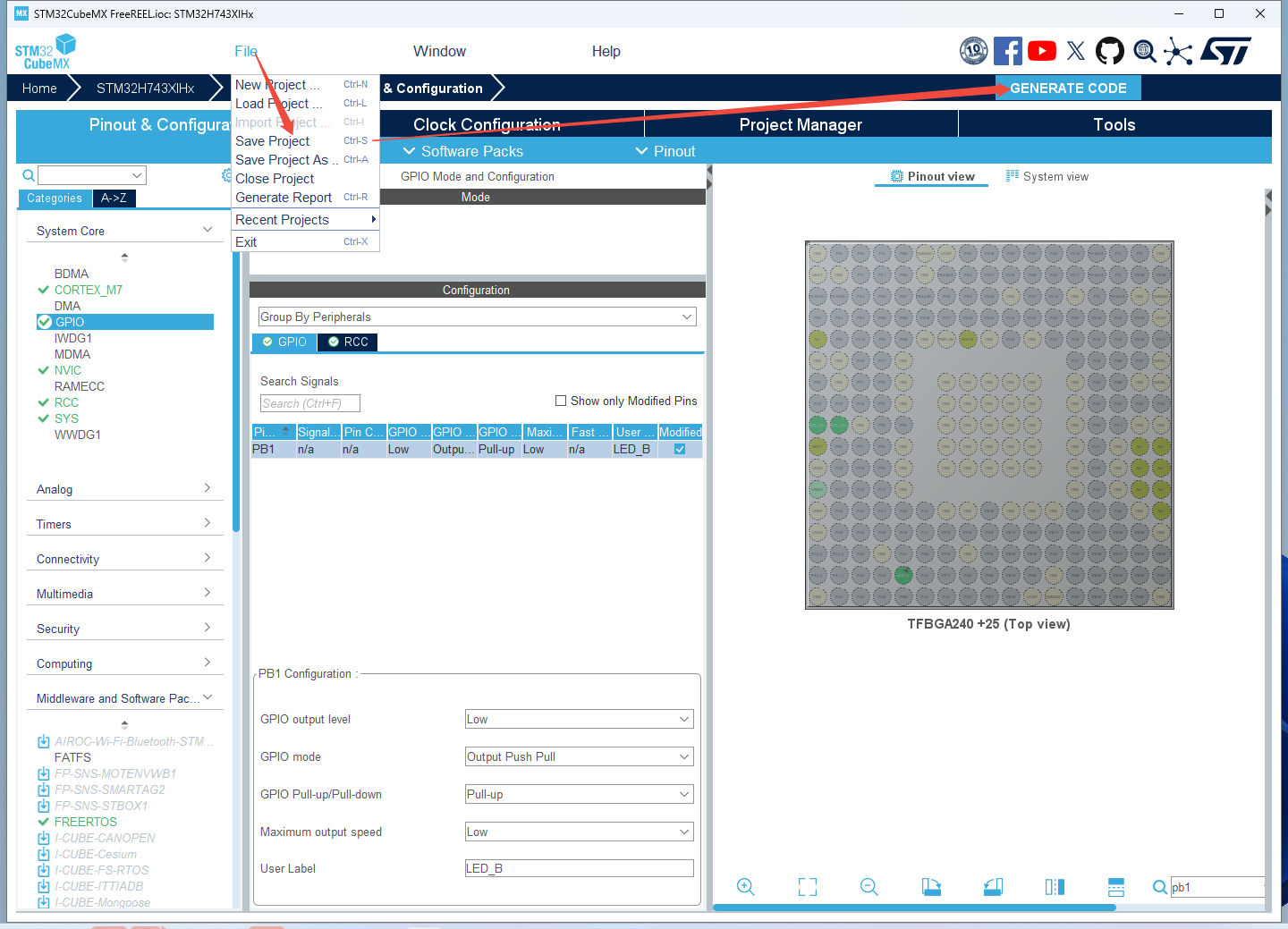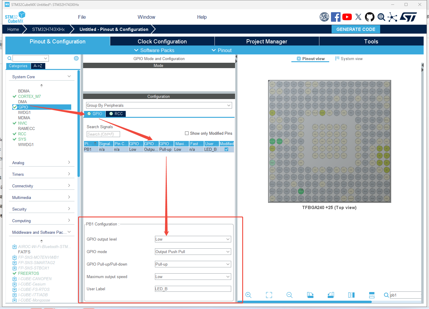 (2)设置引脚为GPIO_OUT并设置标签为LED_B