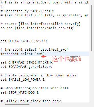 # This is an genericBoard board with a single STM32H743XIHx chip## Generated by STM32CubeIDE# Take care that such file, as generated, may be overridden without any early notice. Please have a look to debug launch configuration setup(s)# source [find interface/stlink-dap.cfg]source [find interface/cmsis-dap.cfg]set WORKAREASIZE 0x8000# transport select "dapdirect_swd"transport select "swd"set CHIPNAME STM32H743XIHxset BOARDNAME genericBoard# Enable debug when in low power modesset ENABLE_LOW_POWER 1# Stop Watchdog counters when haltset STOP_WATCHDOG 1# STlink Debug clock frequencyset CLOCK_FREQ 8000# Reset configuration# use hardware reset, connect under reset# connect_assert_srst needed if low power mode application running (WFI...)reset_config srst_only srst_nogate connect_assert_srstset CONNECT_UNDER_RESET 1set CORE_RESET 0# ACCESS PORT NUMBERset AP_NUM 0# GDB PORTset GDB_PORT 3333set DUAL_BANK 1# BCTM CPU variablessource [find target/stm32h7x.cfg]