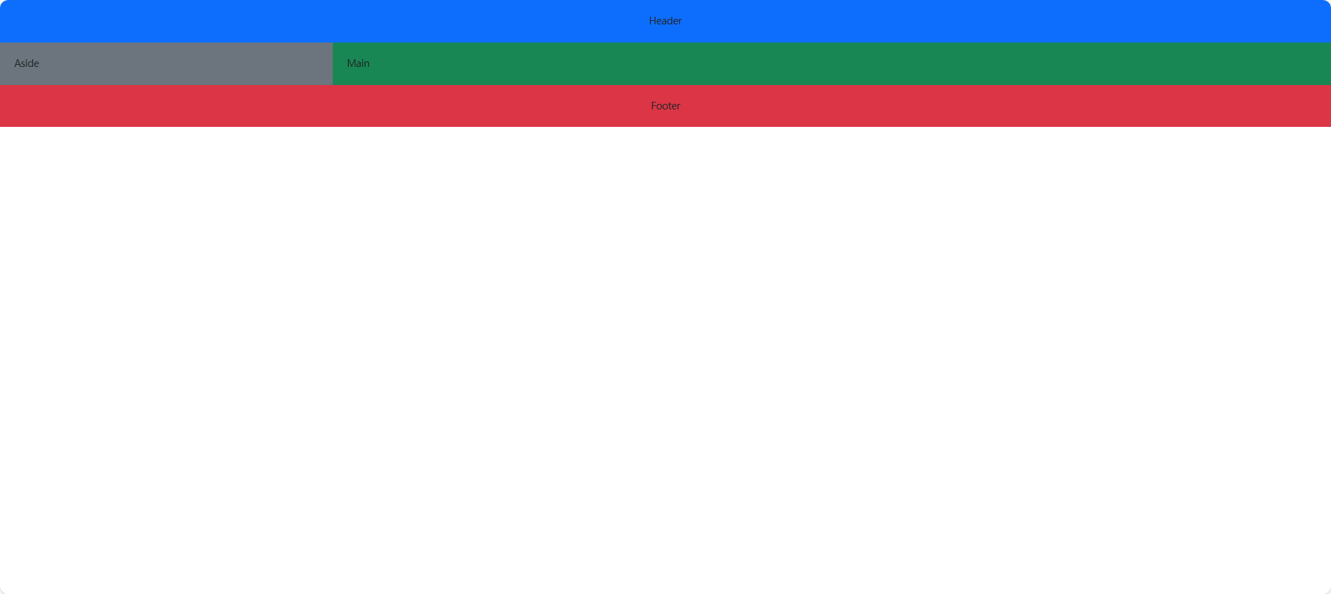 <!doctype html><html lang="en" ><head> <meta charset="utf-8"> <meta name="viewport" content="width=device-width, initial-scale=1"> <title>Grid Hybrid Layout</title> <link href="https://cdn.jsdelivr.net/npm/bootstrap@5.3.0/dist/css/bootstrap.min.css" rel="stylesheet"> <style> .layout-grid { display: grid; grid-template-columns: 16.666% 1fr; grid-template-rows: auto 1fr auto; height: 100vh; } @media (max-width: 768px) { .layout-grid { grid-template-columns: 1fr; } } </style></head><body> <div > <!-- 侧边栏 --> <aside > <h3 >Aside</h3> </aside> <!-- 主内容区 --> <header > <h3 >Header</h3> </header> <main > <h3>Main</h3> </main> <footer > <h3>Footer</h3> </footer> </div></body></html>