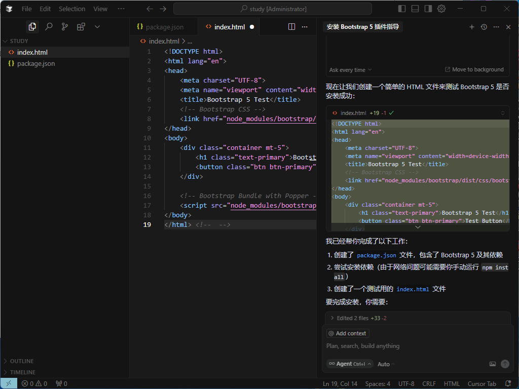 边距:mt-5(margin-top: 3rem)、mx-auto(margin-x: auto) 颜色:bg-primary(background-color)、text-white(color) 排版:text-center(text-align: center)、fs-4(font-size: 1.5rem) 布局:d-flex(display: flex)、gap-3(gap: 1rem) 举一反三: