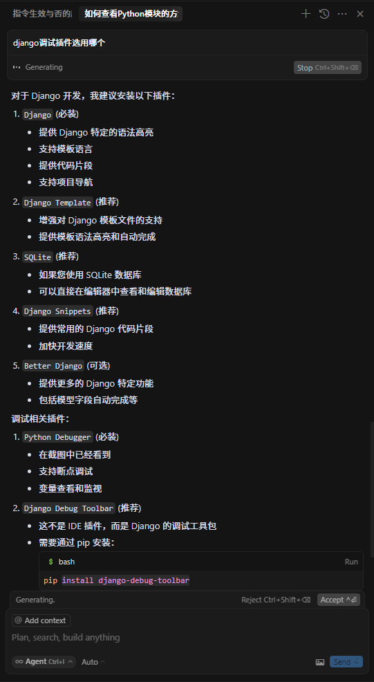 对于不了解用什么插件,直接问cursor ,如: