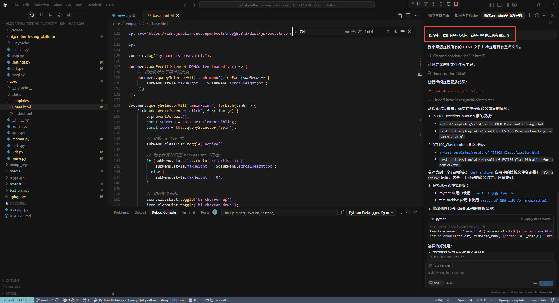 直接让cursor处理,以解决django模板重名问题(当然,还可以增加命名空间或其他方式解决该问题):