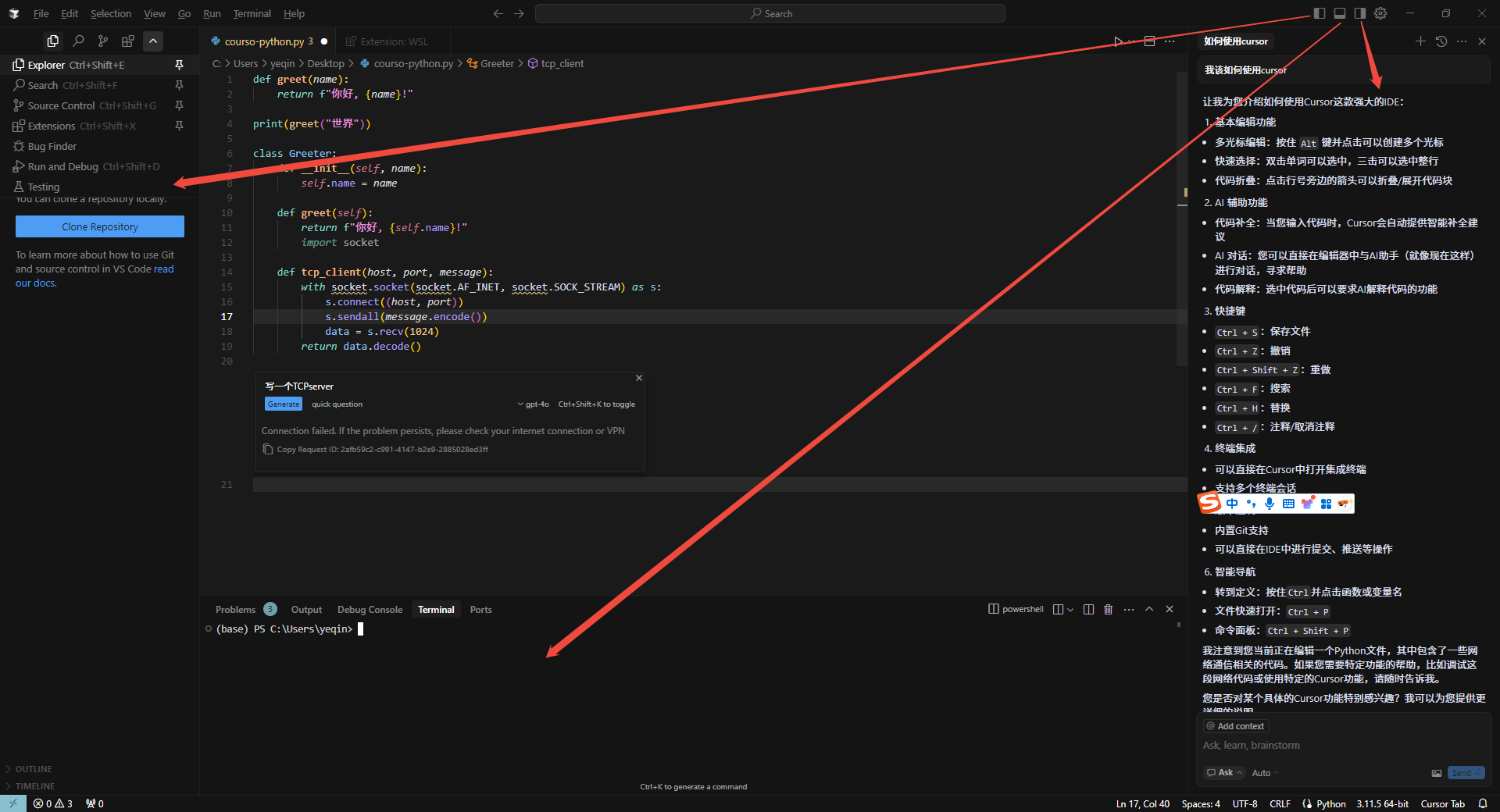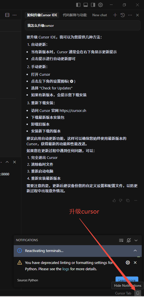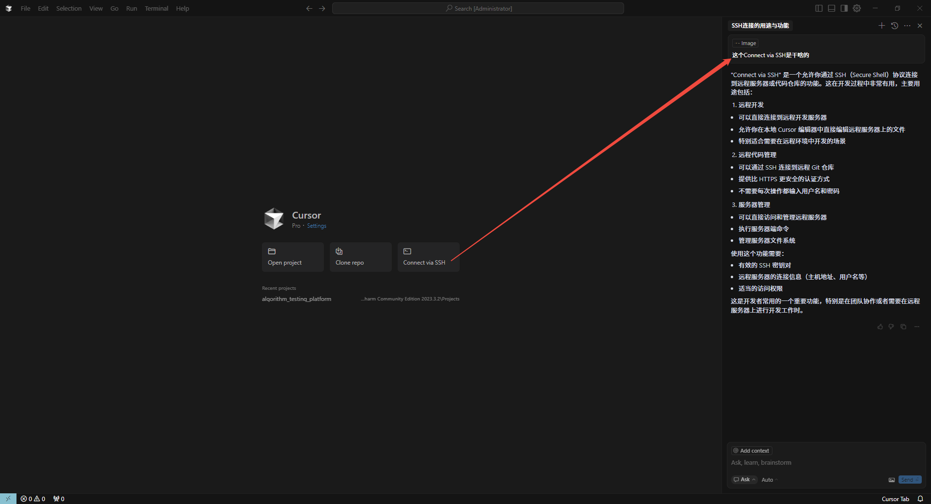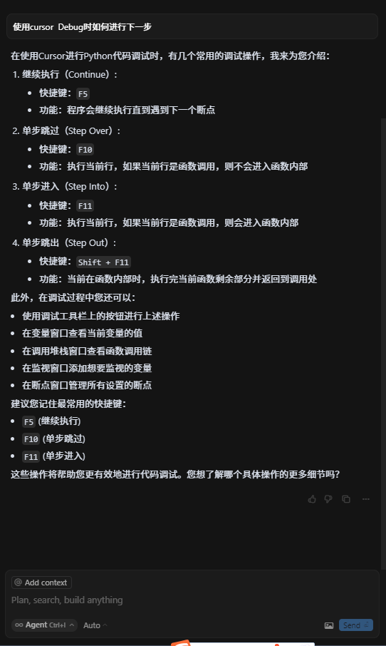 还可以问他关于cursor的功能。