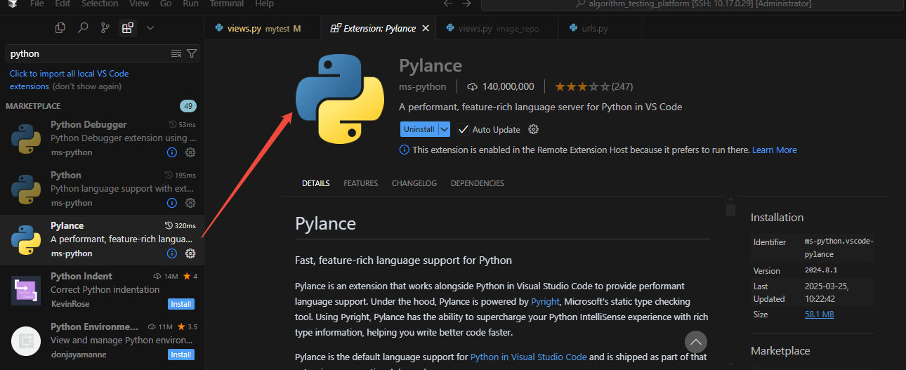 4、安装Pylance插件(扩展)