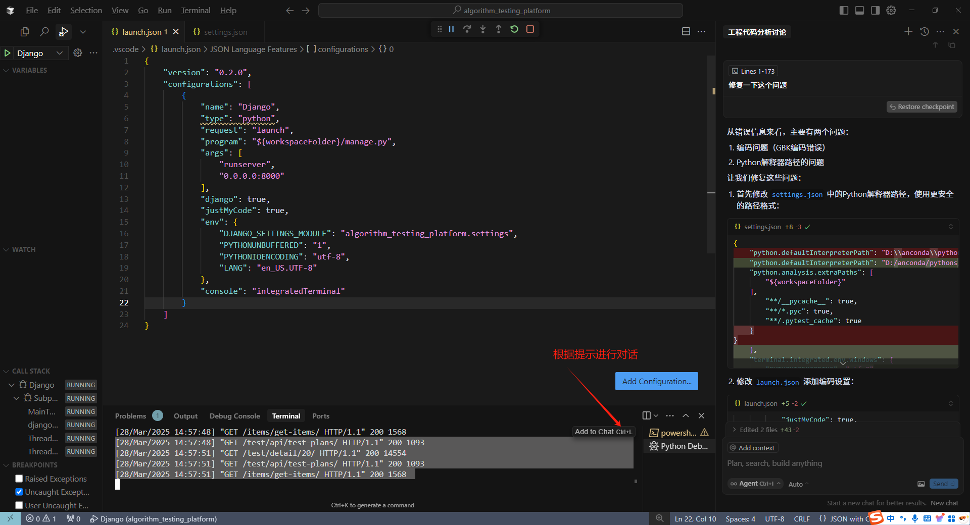 出问题时可以让他修复,并最终运行成功: