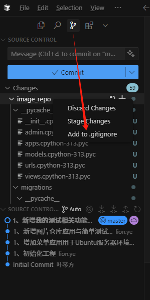 前置条件:已经加载了有git的工程。