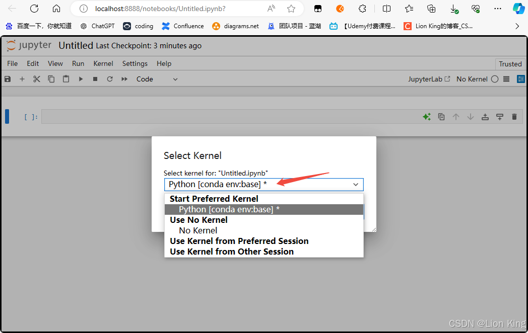如果kernal没有创建好的虚拟环境可选,可以通过注册kernal的方式增加选项。
