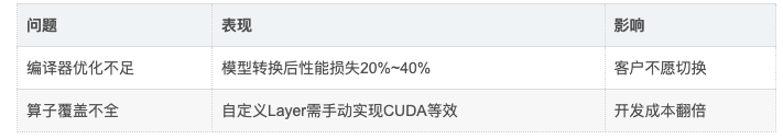 尽管硬件性能接近国际水平,但国产AI芯片在实际项目中仍面临两大工程难题: