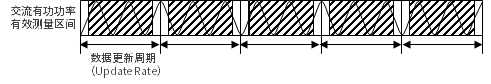 功率计或功率分析仪在计算交流信号的功率时,会在指定的数据更新周期内取电压或者电流的完整周期内的采样点去计算电压有效值Urms、电流有效值Irms和有功功率值P等参数,如下图中阴影部分。当数据更新周期不是信号周期的整倍数时,整周期之外的采样点就会被舍弃(即死区),不参与功率值的计算,如下图空白部分。