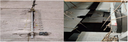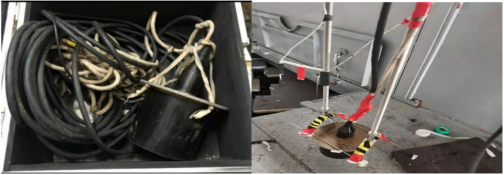 (a)垂直线阵实物图(b)垂阵线阵布放实物图