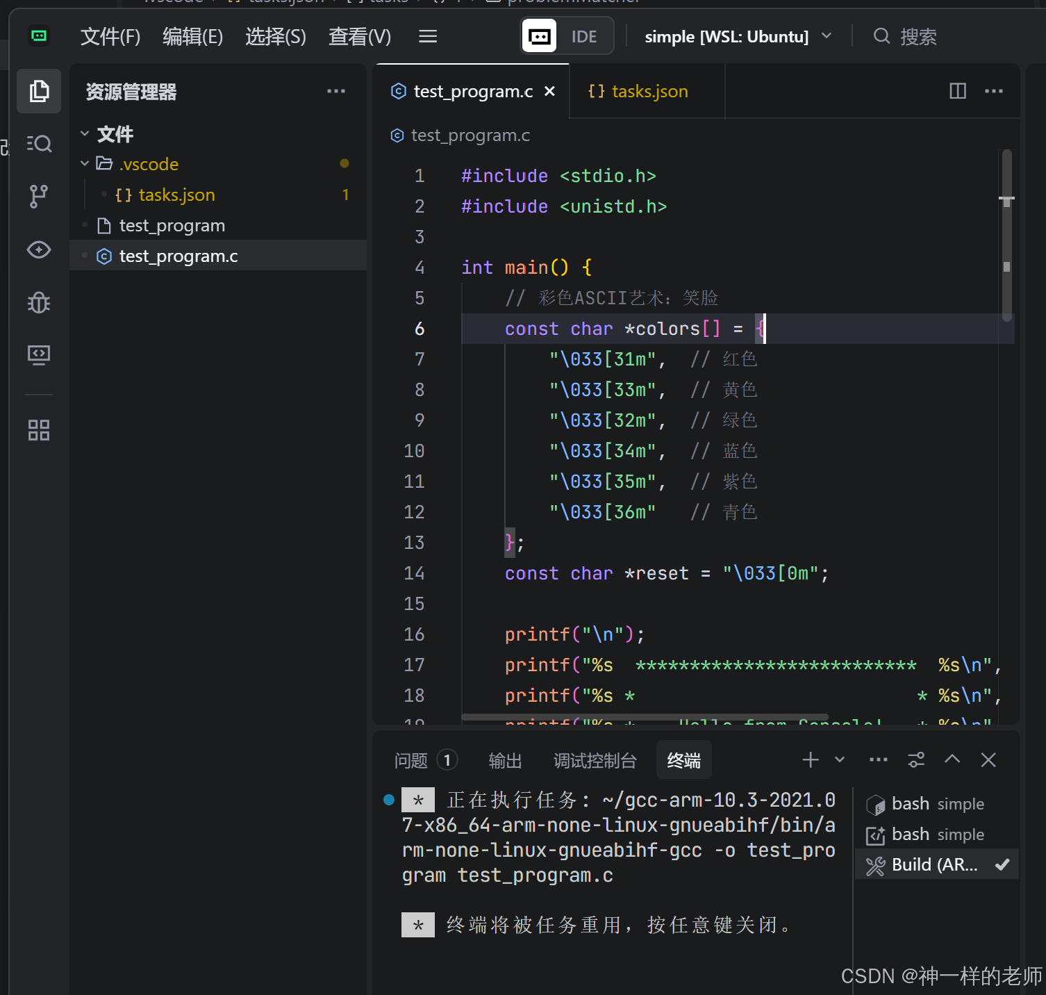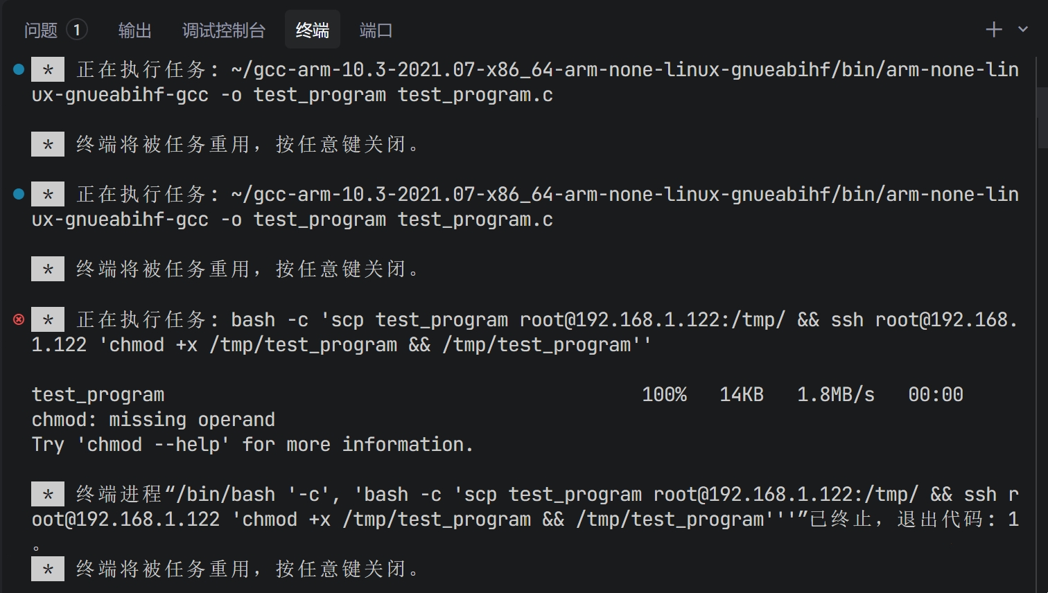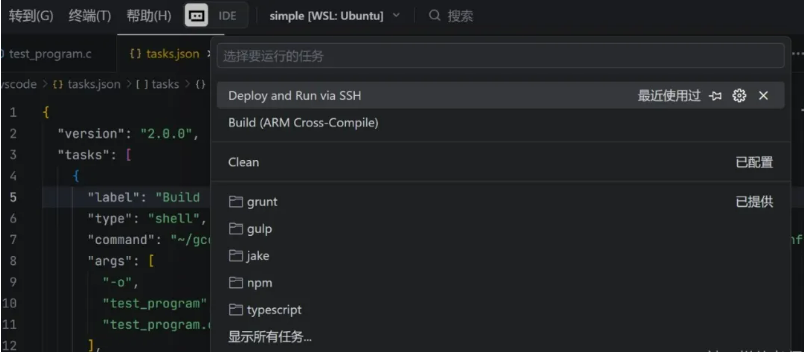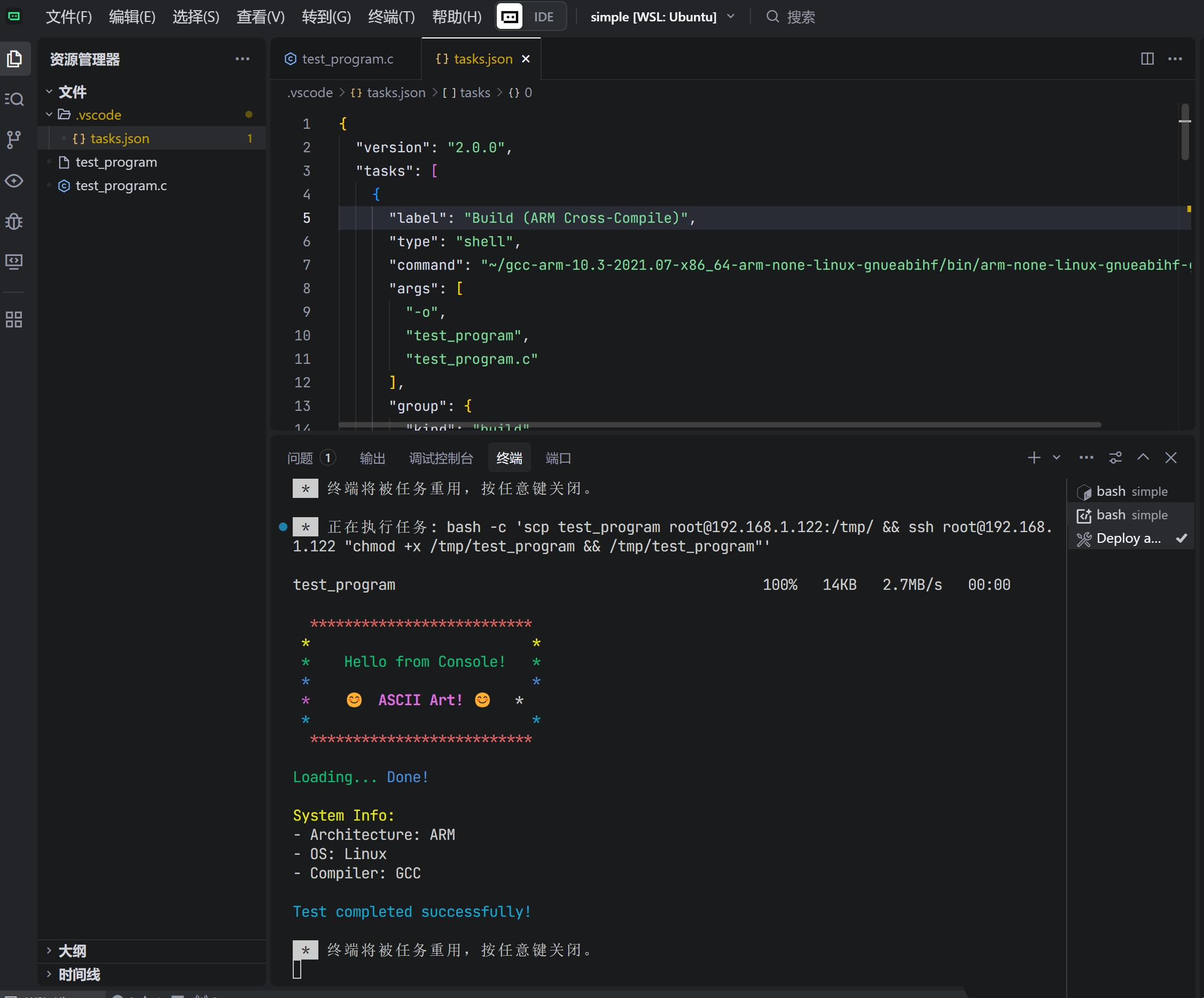 现在使用TRAE IDE菜单上的“终端→运行生成任务”,就可以交叉编译生成可执行文件test_program了。